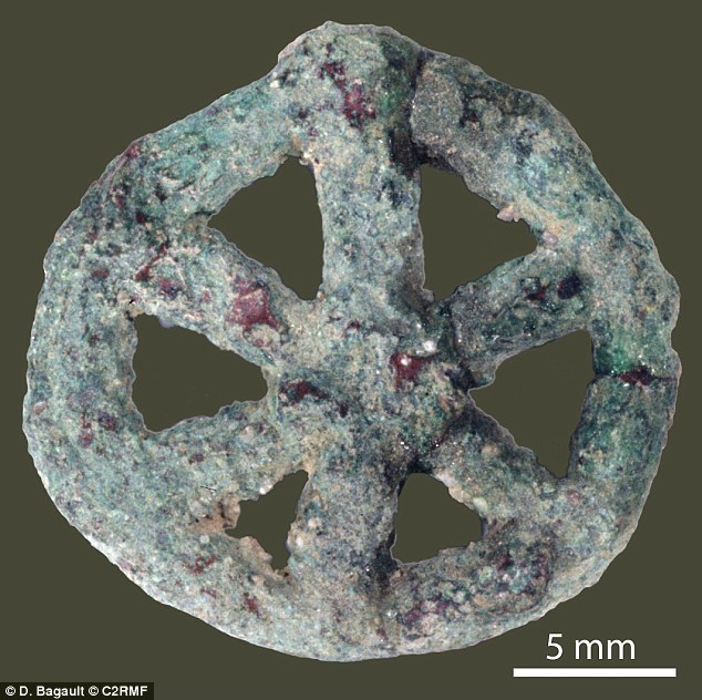 为了让这个六轴护身符交出它原本的故事,一个由法国国家科学研究中心(CNRS)所带领的团队将高能光束射在人工制品上,这种技术叫光致萤光光谱(photoluminescence spectroscopy)利用吸收和反射光来确定物体内包含什么金属成份。