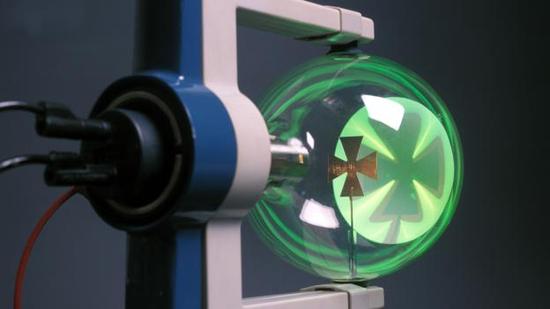 然而,如何证明这些粒子存在呢?答案是,即使这些粒子很微小,但它们却能产生巨大撞击。1897年,英国物理学家汤姆森使用了一套特殊的奇妙方法证明了电子的存在。这种特殊装置就是克鲁斯电极管,这是一根形状奇特有趣的玻璃管,里面的空气几乎被一机器抽空。接着,在玻璃管的一端放入一个负电荷,足以去除管内气体分子的电子。电子带有负电荷,因此它们沿着玻璃管从一端流到另一端。由于内部真空,这些电子可在不受原子阻挡的情况下通过管道。电荷使得电子迅速运动,大约是每秒59500公里,一直撞到玻璃管的另一端,撞入拥有更多电子的原子中。更为神奇的是,这种微小粒子的碰撞产生了巨大能量,发出眩目的黄绿色光芒。克利夫称:“这是某种形式的首个粒子加速器,它将电子从管的一端推向另一端时加速,当电子撞到另一端时就发出了这种磷光。”由于汤姆森发现可以借助电磁场改变电子束的方向,因此他能够确定这不是奇异的光线而是带电粒子。