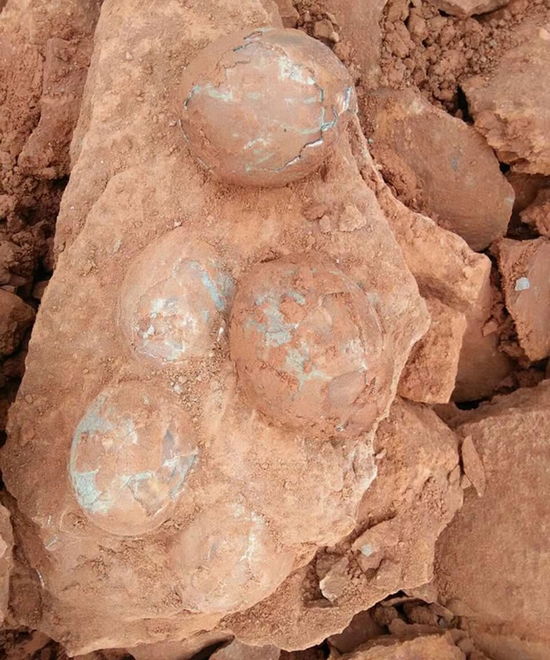 5月18日,位于上高县野市乡游家村的县绿色食品产业园建设工地,施工人员在土地平整作业时,挖出了12枚恐龙蛋化石。