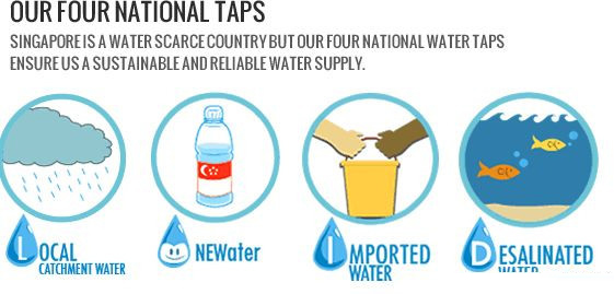 除了收集雨水和从马来西亚进口水之外,新加坡还开发出非传统的水资源,例如用过的水的循环再利用和海水淡化,从而形成一个名为“国家四水龙头(Four National Taps)”的强大供水系统。