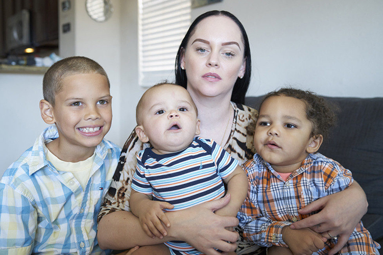 洁西卡在一对中国情侣答应付她3万元美金后成了一位代理孕母。(加州是美国少数允许女性靠代理孕母赚钱的州)