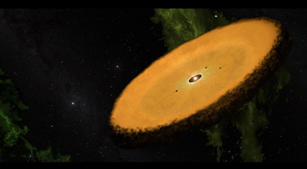科学家认为行星是从恒星周围一圈由气体和尘埃组成的圆盘内诞生,也叫原始行星盘。这个行星盘一般存在几百万到最长1,000万年的时间,直到诞生所有绕行恒星的行星。