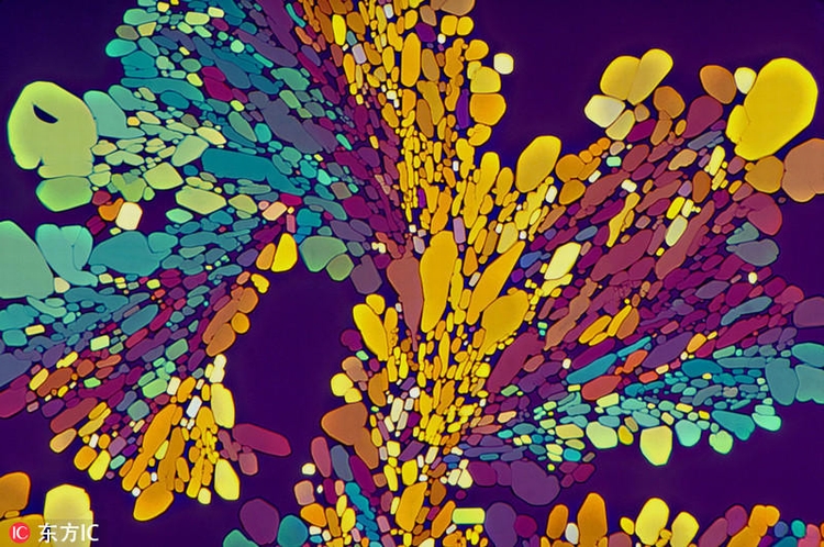 我们平时吃的药进入身体以后会变什么样你知道吗?摄影师Dennis Kunkel用一组光学显微照片向我们揭示了药入身体后的奇异改变。在这组照片中,β-胡萝卜素晶体如小孩手涂鸦的水彩画,尿酸铵晶体则是色彩浓厚的抽象派画作,维他命C晶体干净纯洁形成羽毛状,治疗抑郁的圣约翰草晶体高低起伏形成彩色晶柱,孕酮晶体变成彩色鹅卵石拼凑的图画,最不可思议的是尼古丁晶体,形状如点燃的香烟顶上还飘着烟。