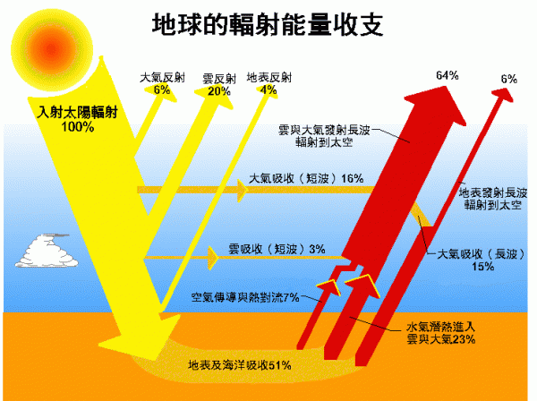 根据过去的研究显示,我们都知道地球上的生命能够发展得如此之快,并且能够结束全球性的温室气体的排放,这似乎是对于我们行星的 反照率起了正面的效果,而所谓反照率,指的是反射辐射与吸收辐射的比率。这是相当重要的因素之一,因为当地球刚形成时,太阳光比现在少了有25%,但是所有的证据却指向海洋变成液状,或至少没有完全的冰冻起来。这个景像就是著名的微弱的年轻太阳悖论( faint young Sun paradox.)。