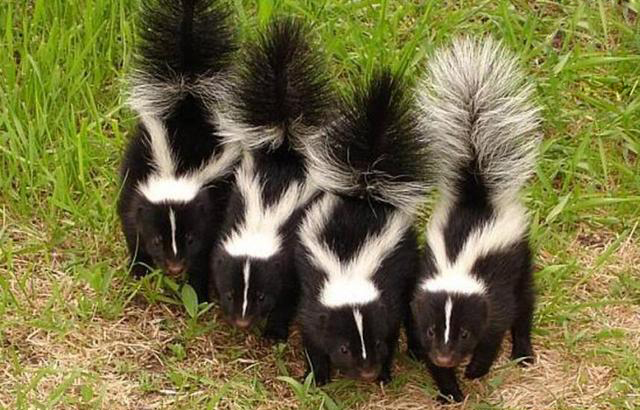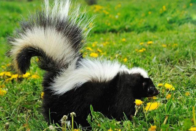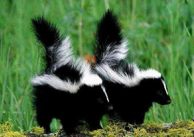 不过尽管上述这些生物的“屁”都很有杀伤力,但是跟臭鼬比起来就算不了什么了。臭鼬主要生活在美国、墨西哥以及加拿大的部分地区,身体长度大约为90厘米左右(包括尾巴)。这个体型看起来不算小,但其实却是“虚胖”,臭鼬的实际体重不过只有10斤左右,只是它们又长又蓬松的毛发让它们看起来有了那么几分威武。