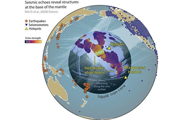 美国马里兰大学的地球物理学家通过先进的算法同时分析几百次地震的数据,看到以前从少量数据中看不到的规律——发现在地核-地幔交界处存在一种高密度、高温的大型地质结构。