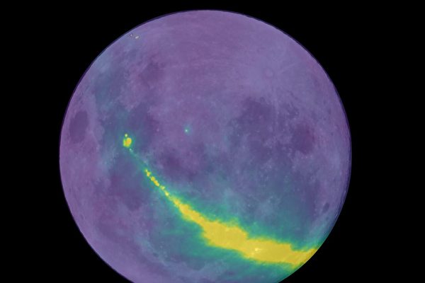 据美国科学会EurekAlert网报道,一组研究人员利用位于偏远西澳的默奇森广角阵列(Murchison Widefield Array)天文望远镜收到的信号绘制了一张月球反射电波的有趣的图片(如图)。这个偏远的天文站受到地球的无线电波的干扰最少。