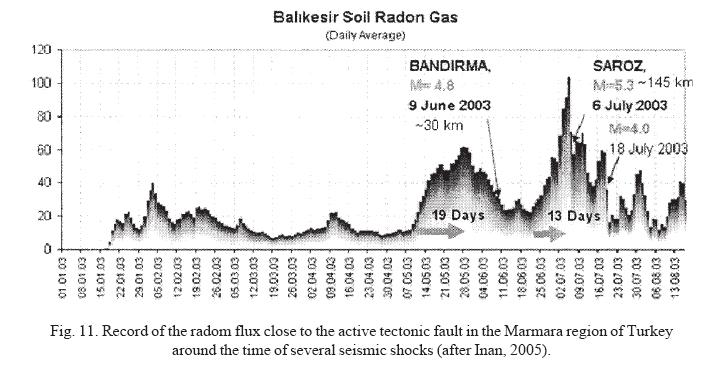 在尼泊尔2015年4月的大地震发生之后,他们根据岩石圈、大气层和电离层之间的所纪录的数据进行分析。科学家们发现,在地震发生的前三天,在震央上方的电离层测到红外线辐射的峰值,而且在地震发生的前三天,在震央处也测到类似的峰值。在2011年日本东北大地震发生前,上空电离层也有上升。此外2010年海地大地震发生之前,也同样测到无线电波反射的一个峰值。
