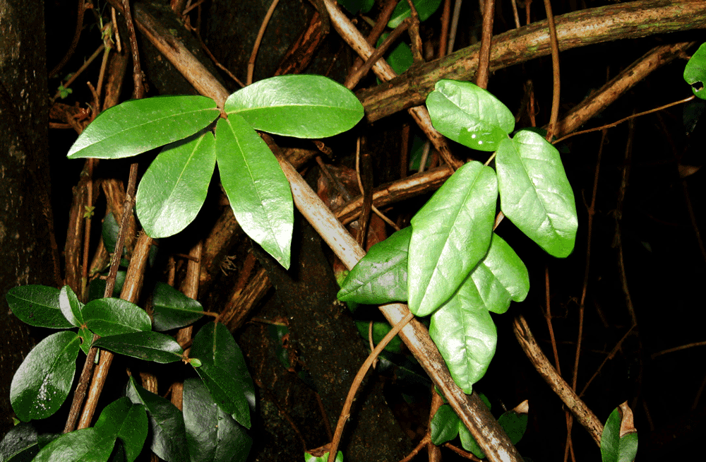 但几年前的某一天,植物科学家Ernesto Gianoli和他的学生一起在智利雨林里漫步的时候,遇见了Boquila trifoliolata。他们停下来,发现了这一不同寻常的植物。他们看到Boquila trifoliolata在森林地面上的藤蔓长这样,看起来圆圆的: