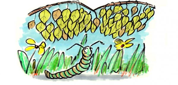 森林里到处都是吃叶子的动物,想象一只饥饿的毛毛虫爬到一棵树上之后的样子: