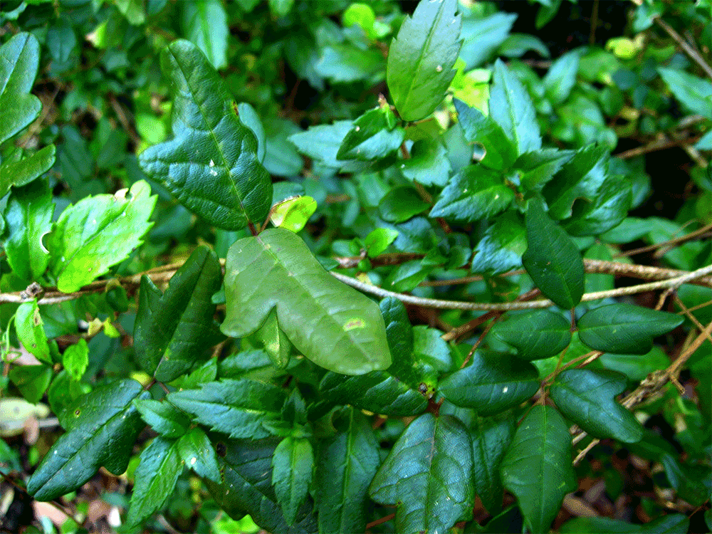 可一旦Boquila trifoliolata的藤蔓爬上宿主植物,它的叶子形状就变了。现在它们看上去是这个样子,变得更长更狭窄了: