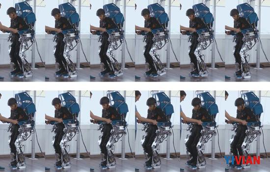 女性患者病人一号,在实验的一开始甚至不能依靠支架站起来。