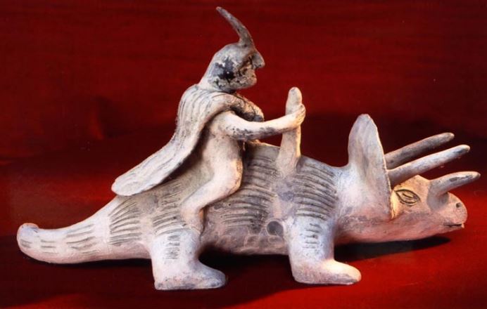 具争议的雕像。这个知名的阿坎巴罗雕像很明显是一个人类骑在恐龙身上。( 图片来源: Creative Commons )
