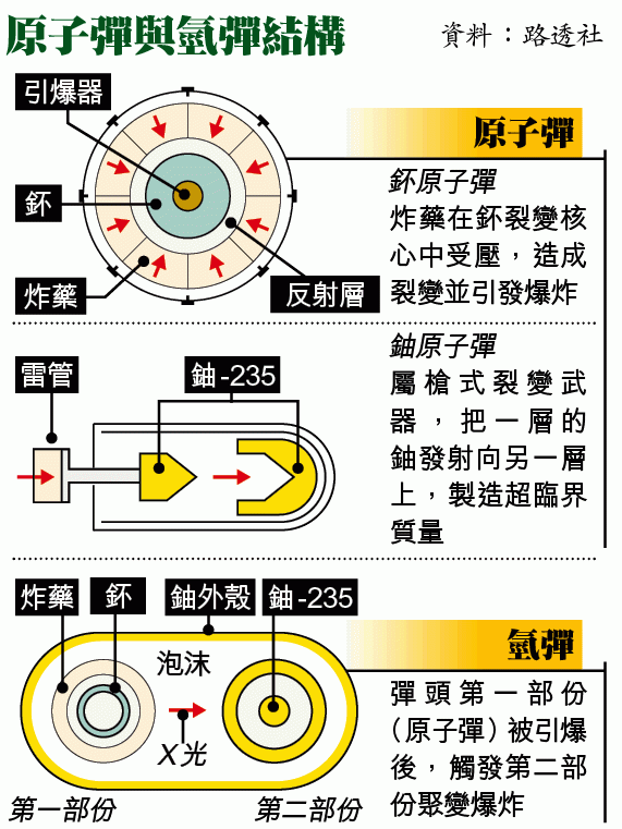 氢弹与普通原子弹不同,像是美国在第二次世界大战结束前投掷在日本的是原子弹。美国在广岛和长崎引爆的这两枚原子弹(A-bomb),总共杀死超过20万人。