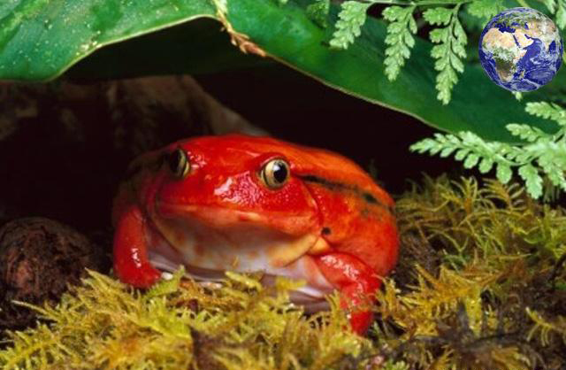 在所有的动物中,品目最繁复的数得上两栖类了。光是形形色色的蛙类,全世界大概就有四千三百多种。在这四千三百多种青蛙中,有一种名为番茄蛙的奇特青蛙最为古怪,它们长得很像一个熟透了的大番茄,但是周身上下却布满了剧毒,十分危险!