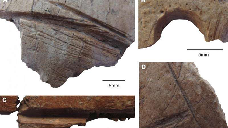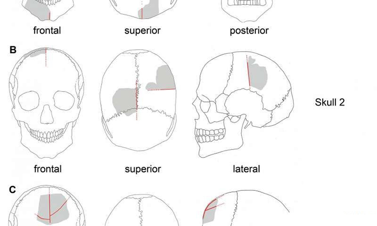 这个团队判定他们所发现带有独特标记的头骨碎片刚好是3个人的,每个都有直线深沟刻在骨头中,而且其中一个还有一个孔钻过头顶。这些沟的深度在0.2到4毫米之间,并且由使用石头工具的人明确地刻出,而不是由另一种动物或其他自然过程造成的。同样地,这些沟被判定是在这个人死后刻的,因为没有出现自然修复的骨头生长。此外,看起来这些沟是在这个人死后不久就被刻的,趁骨骼还依然相当有弹性的时候。