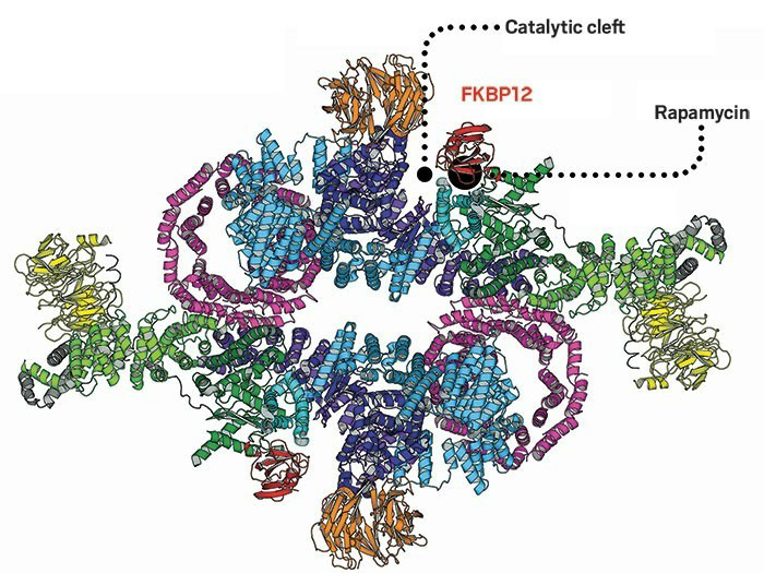 根据美国国家生物技术资讯中心(NCBI)的报告,此化合物会使蛋白质FKBP12 和mTOR结合,阻碍调节营养资讯的mTOR活动。这种mTOR药理性调节作用有疗效,且已进入某些疾病的临床实验。