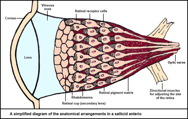 就像1609年著名天文学家首度使用的那台望远镜,基本上蜘蛛的眼睛是末端有镜片的管子。一个镜片收集并集中光线,另一个则使光线散开并放大影像,让蜘蛛能看到很多影像的细节。