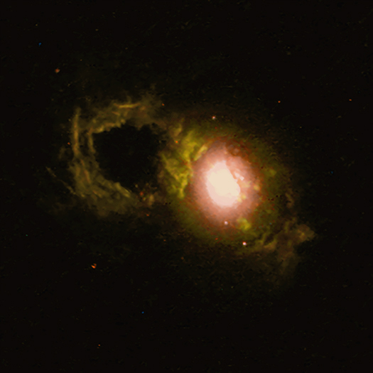 这个“茶杯”位于SDSS 1430+1339星系,该星系距离地球大约11亿光年,于2007年首度被民间科学家发现。此后,专业科学家利用地面望远镜对其进行观测,以了解其发展的过程。