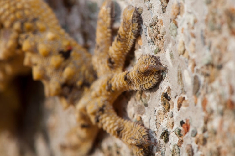 另一方面,适应了吉拉利亚岛的本地物种-欧洲叶趾壁虎,它们的脚趾顶端只有两个黏着点,与摩尔壁虎的“一整片”不一样。它们用脚趾进行攀爬时,就可以利用这些黏着点,如果沾到了灰尘,它们可以把黏着点“整个捲起来”,以防沾灰尘,然后再用锐利的爪子进行爬行。