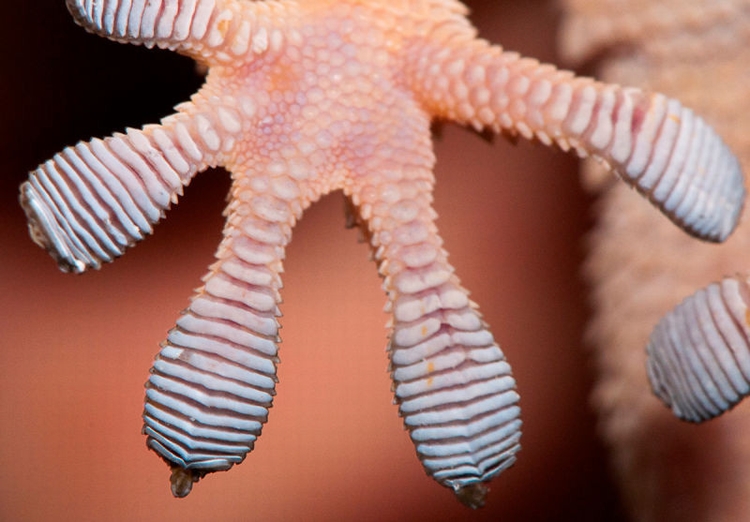 ▼摩尔壁虎的整片吸附性脚垫(肉球)