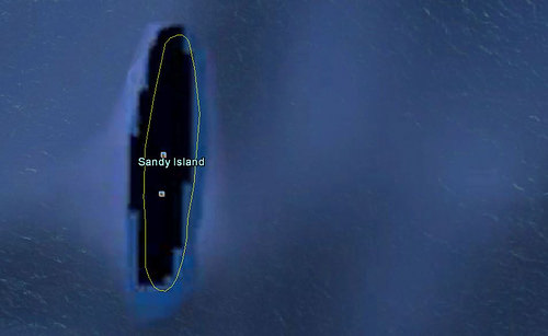 在 2012 年,一组澳洲研究人员团队发现,有一座没有被发现过的岛屿位在南太平洋上。它被叫做“ 珊迪岛( Sandy Island )”。这座神秘岛屿出现在地图上,就在新喀里多尼亚的西北方。 2012 年,科学家决定去确认这个发现,但是却什么都没找到,只有一片开阔的海洋,而没有坚实的土地。