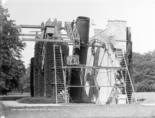爱尔兰“帕森城的利维坦”(Leviathan of Parsonstown)是由罗斯爵士于1845年建成的一台重达40吨的反射望远镜,70年来一直保持着世界最大望远镜的殊荣。但由于当地的湿热天气,它大部分时间停机。