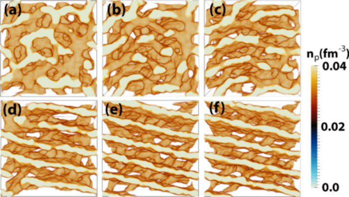为了理解这个发现,我们需要迅速埋头思考神秘的原子核的物质世界,研究者称作“核面条”(nuclear pasta),因为它看起来很像意大利面的面条,您自己瞧瞧。