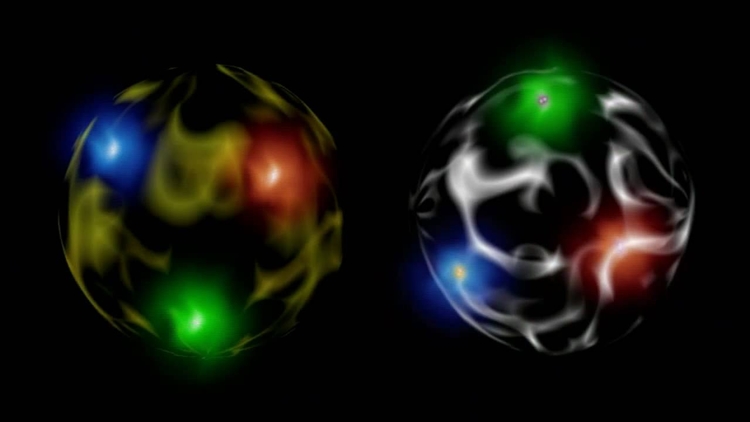 换句话说,两种强大的力量和另一个力量互相对抗,将不同粒子的组成强力形成物质,建构成鹰架形式的组织,就像意大利面一样。