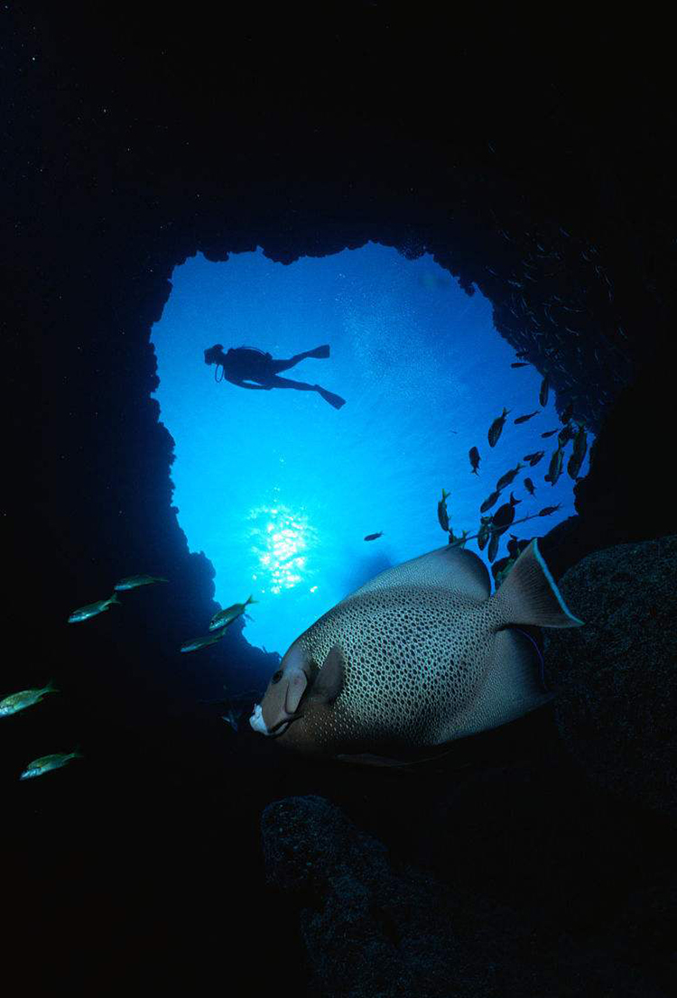 科学家把水下洞穴统称为“蓝洞”。世界各地有不少海底洞穴,有的可深达近一千英尺,潜入这些洞穴是很危险的工作。