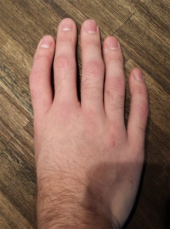 7. 一名行政人员和篮球运动员手掌的差别。