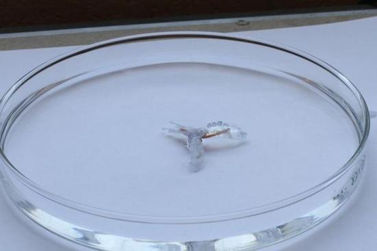 另外一些研究者从自然中汲取灵感,打造生物驱动的生物混合机器人。例如,来自加州理工学院的一支研究团队从水母中得到灵感,开发了一款生物混合机器人。研究团队将这款机器人称为“水母类机器人”,它有着能够绕城圆圈的手臂,他们称之为“水母机器人”,它的周围安装了一圈手臂,每条手臂都用蛋白质材料刻印了微型模型,就像活体水母的肌肉一样。当细胞组织收缩的时候,这些手臂就会向内弯曲,推动生物混合机器人在富含营养物质的液体中向前移动。