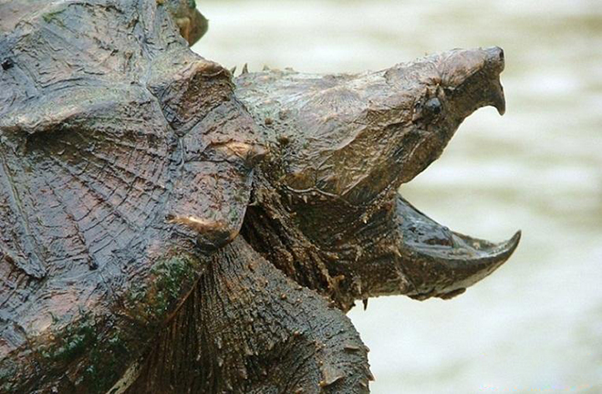 大鳄龟:这种大鳄龟看起来完全是一种史前怪物,它锥形的嘴巴甚至能切开猎物。这种生物看起来就像来自于《侏罗纪公园》,但是它们事实上就生活在墨西哥湾中。