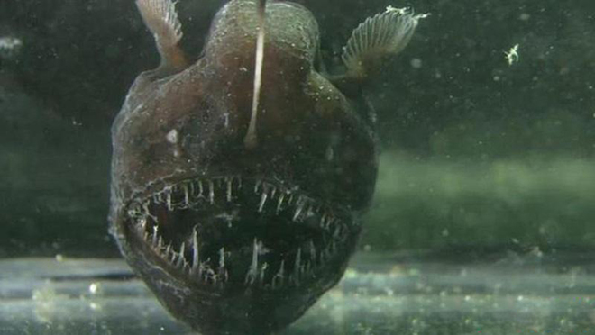 约氏黑角鮟鱇:鮟鱇鱼有许多种类,但是雌性约氏黑角鮟鱇鱼毫无疑问是其中样貌最可怕的。它的背鳍会像鱼竿一样吸引易上当的猎物靠近它致命的嘴巴,有时候它也会吸引到雄性进入到它的嘴中。