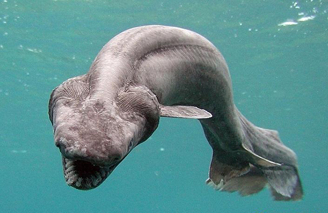 皱鳃鲨:皱鳃鲨拥有数百颗牙齿和鳗鱼一样的身体,它们仿佛是来自外星世界的异形幼体。虽然这种史前捕食者现在相当罕见,但是2015年年初人们在澳大利亚海岸捕获了一只。