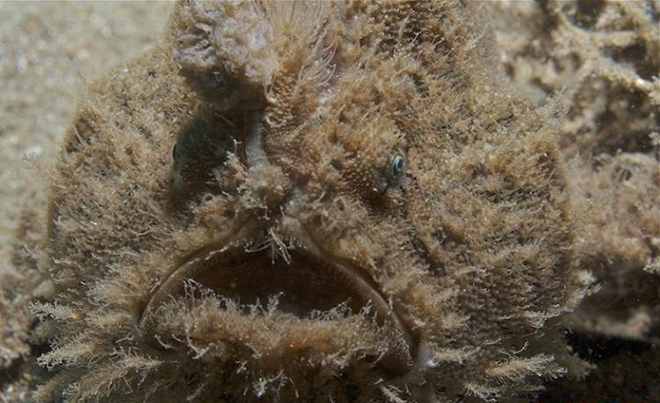 躄鱼:有时候现实生活远超我们的想象。比如说,现在存活于自然界的部分生物看起来就像出自于好莱坞的恐怖电影。它们是证实大自然母亲最黑暗一面的真实证据。照片中的是一种亚热带躄鱼,它的毛发状体刺能够让它伪装成一颗珊瑚,但是它也能够借助后部的鱼鳍在海底缓慢行走。