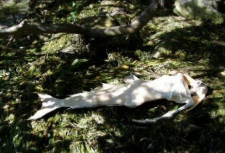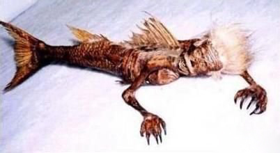 无独有偶,最近美国两名职业捕鲨高手在加勒比海海域捕到11条鲨鱼,其中有一条虎鲨长18.3米,当渔民解剖这条虎鲨时,在它的胃里发现了一副异常奇怪的骸骨,骸骨上身三分之一像成年人的骨骼,但从骨盆开始却是一条大鱼的骨骼。当时渔民将之转交警方,经过验尸官检验,结果证实是一种半人半鱼的生物。
