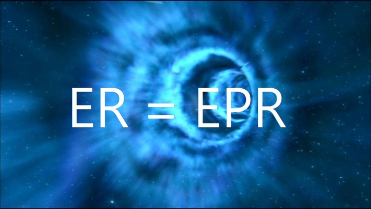 方程式左边的ER是爱因斯坦和他的助手罗森,指的是1935年他们共同执笔的那份虫洞研究,虫洞在学术上又被称为爱因斯坦-罗森桥(Einstein—Rosen bridge)。