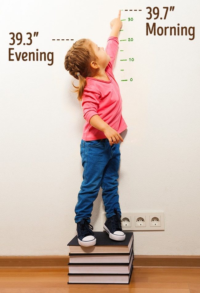 晚上睡觉时,我们的椎间盘会放松和扩张,这就是为什么通常早上量身高会比晚上高1%。