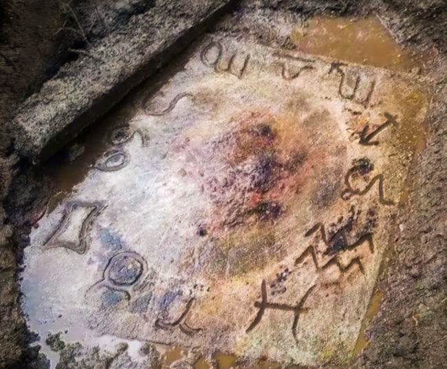 十二星座石板几年前出土于美国发现,专家研究了土层的厚度和纹理认为这是距今几百年的历史了。根据石板排列图案,这可能是利用太阳测定时间的仪表。