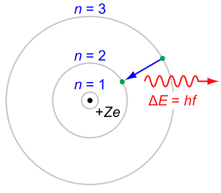 根据古典物理学,这个电子绕着原子核作圆周运动,有点像是月球环绕地球公转。不同的是,月球和地球的距离几乎固定不变,电子和氢原子核则是可近可远──两者距离越远,电子的总能量(动能+位能)也就越大。