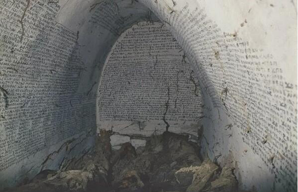 地窖白色的墙壁上用黑墨水写满了埃及古语和希腊语的碑文。还有福音书的节选以及神秘的名字与符号,有人认为这是为了保护死者免遭邪恶力量的侵袭。传说刚刚去世的人会处在不稳定的状态中,在灵魂受审之前很容易受到侵害。