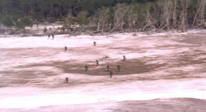 这... 是在射箭吗?!原来这个岛上的部落非常野蛮,只要有外来者全都格杀勿论,传说在1868年的时候,有一艘印度船叫做 Nineveh,因为意外所以船上的人被困在这个岛上,结果就被部落的人攻击。还有1981年的时候,有一艘叫做Primrose的货船,船员们也因为被困在岛上,被部落的人攻击,不过他们比较幸运地有直升机来救援。还有2006年的时候,有两个渔夫到这个North Sentinel Island 的附近钓鱼,结果因为太靠近岛屿沿岸,就被这个部落的人杀了。那如果是直升机或飞机刚好飞过这个岛会怎样?