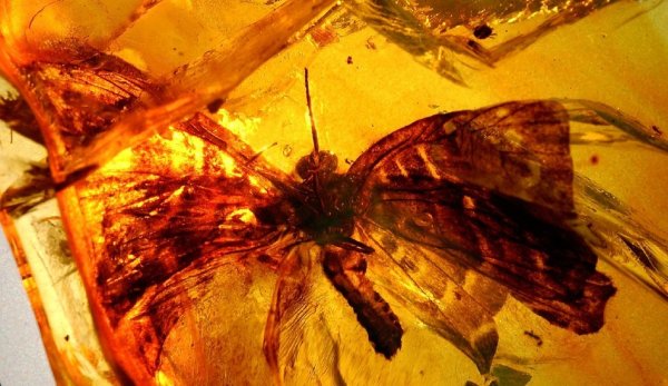 这个收藏于美国自然历史博物馆的琥珀,内部有一只蝴蝶被完好地保存。研究者认为这是2000万年前的化石。