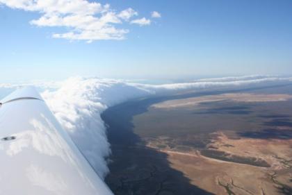 这是一种弧状云,长度可以到达1000公里,阵晨风云是很稀有的大气现象,出现的地点也很不定。它有1到2公里高,与地面相近,它的形状是持续而不断的云,通常有强风伴随着它。