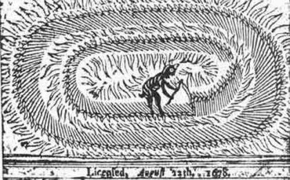 麦田圈最早的纪载出现在1678年的手册叫做割草的恶魔(The Mowing-Devil) 。 最惊人的是这些巨大横跨大量土地的麦田圈都是隔夜出现。对于这些麦田圈出现的猜测有军事实验到UFO都有。不过科学界大部分的人认为是人为,而有些人说是天气与大自然的影响。
