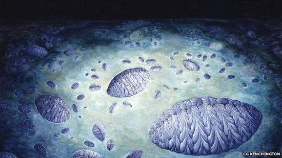 Fractofusus种群的艺术想象图。这种动物生活在5.65亿年前