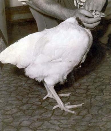 1945年,在美国科罗拉多州夫鲁塔市的克拉拉的农场发生了一件怪事,农夫奥尔森宴请其岳母共餐,他妻子自围栏带回一只五个半月大的公鸡作食物。由于他的岳母喜欢吃鸡颈,于是他斩鸡头时意外留下公鸡的一只耳朵和大部份脑干。