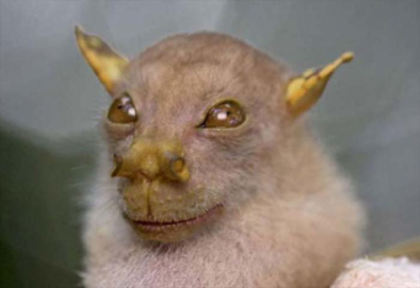 管鼻果蝠:通常蝙蝠都是样貌可怕的,而这一种更加令人惊恐。这种蝙蝠有点像一种邪恶的黑暗生物,它生活在亚热带或者热带的干性森林中。由于人类的砍伐行为,管鼻果蝠正面临着灭绝的危险。