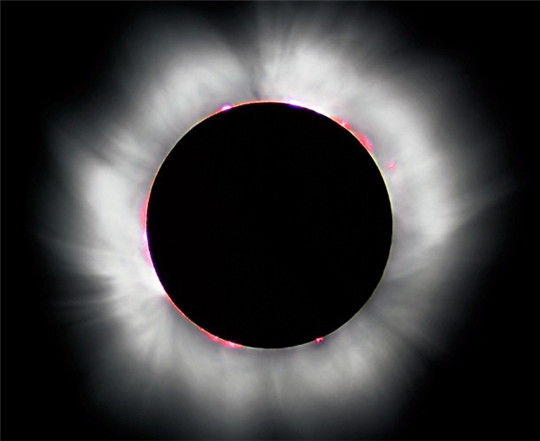 日冕是太阳大气的最外层,厚度达到几百万公里以上。日冕层的温度比太阳表面的温度还要高,太阳表面的温度大约是5800开尔文,而日冕的温度已经达到了灼热的3千万开尔文,对此科学家也没有合理的解释。